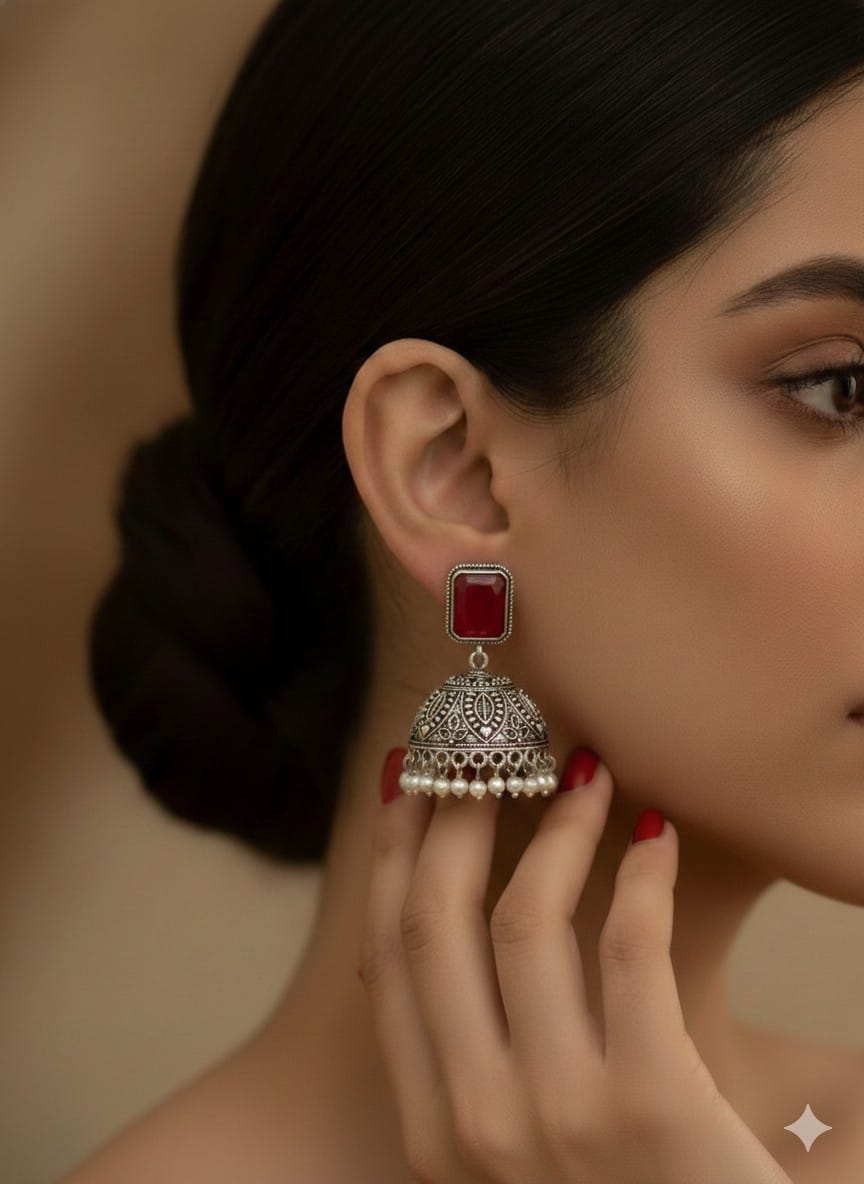 Ruby stone Oxidized Pair of beautiful pair of Jhumkas